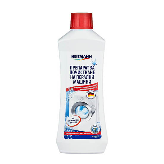 Препарат за почистване на перални машини HEITMANN, предназначен за отстраняване на отлаганията от варовик. Замърсяванията и наслагванията предизвикват функционални повреди, които водят до преждевременно изхабяване на уредите и по-високи енергийни разходи. Препаратът за перални машини отстранява и остатъците от перилни препарати и замърсявания, водещи до появата на неприятна миризма. Така уредите остават хигиенично чисти и подобряват своята ефективност. Препаратът съдържа лимонена киселина, която отстранява отлаганията от варовик. В състава на течността присъстват и тензиди, премахващи упоритите замърсявания. По този начин гумираните части на пералните машини остават еластични за по-дълго време. Препаратът не само почиства основно отделните елементи. Неговите съставки щадят частите на машината. Препорочително е, препаратът за перални машини да се използва поне 2-3 пъти в годината, за да запази функционалността на уредите. Предлага се в удобна опаковка от 0.250л.