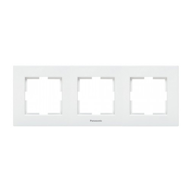 Тройна декоративна рамка-модул за хоризонтално монтиране на електрически ключове и контакти. Рамката е от серия KARRE PLUS на PANASONIC и е в цвят Бял. Тройната рамка за ключове и контакти предлага изчистен слим дизайн. Минималистичният дизайн на електрическите ключове, контакти и рамки Panasonic Karre Plus е подходящ за всяко модерно жилище, обществена сграда или офис.