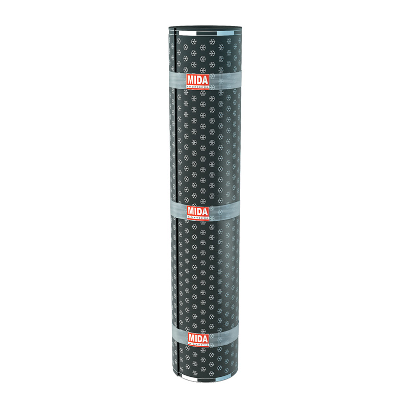 Горният слой е покрит с фини частици от дребнозърнеста посипка за отлична адхезия и контакт към бетон. Долен слой е изграден от полимерно фолио. Тази комбинация придава на MIDA BASE PV S4 свойства, които характеризират продукта с висока степен на гъвкавост и устойчивост на много ниски температури. Освен това, тя притежава отлична механична якост на опън, разкъсване и перфорация.