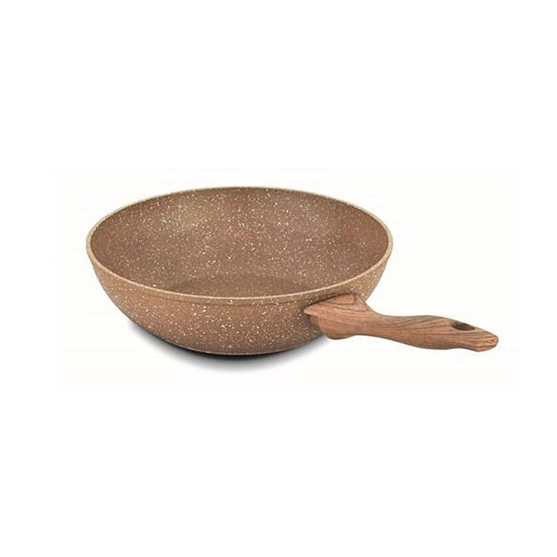 Керамичен Уок тиган от серията Browni на марката KORKMAZ с размер Ф24 х 8см., изработен в светлокафяв цвят. Направен е от висококачествен алуминий с твърдо, незалепващо PTFE покритие, имитиращо гранит и притежаващо неговите ефекти. Дръжката на готварския съд е от бакелит. Устойчива е на топлина и киселинно въздействие. Ръкохватката е неподатлива на влиянието на влага и замърсяване. Издържана е в естествена окраска. Дръжката е снабдена с отвор, с който тиганът може по-лесно да се закача. Идеален е за приготвянето на здравословни храни и готвене, без използването на мазнина. Керамичният тиган притежава 5-слойно дъно. Готварският съд Browni на KORKMAZ не съдържа тежки метали. Подходящ е за миене в съдомиялна машина.