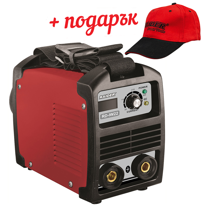 Инверторен електрожен RD-IW22 на RAIDER с редуцирано тегло и компактни размери. За заваряване на метални конструкции се използват два вида апарати - инверторен и трансформаторен електрожен. Първият вид е несравнимо по-лек и компактен. Използва се за дейности, изискващи често пренасяне на електрожена от едно място на друго и най-вече при заварки на места със затруднен достъп като покриви, балкони и веранди, на високо скеле или дори когато работещият се е покачил на стълба. Тогава инверторният заваръчен апарат е без алтернатива.