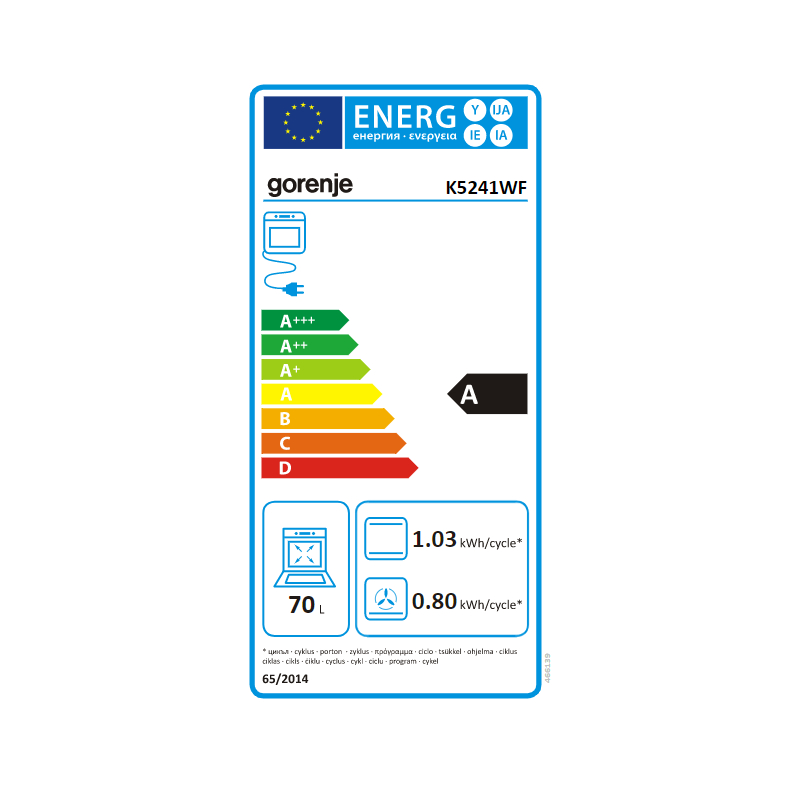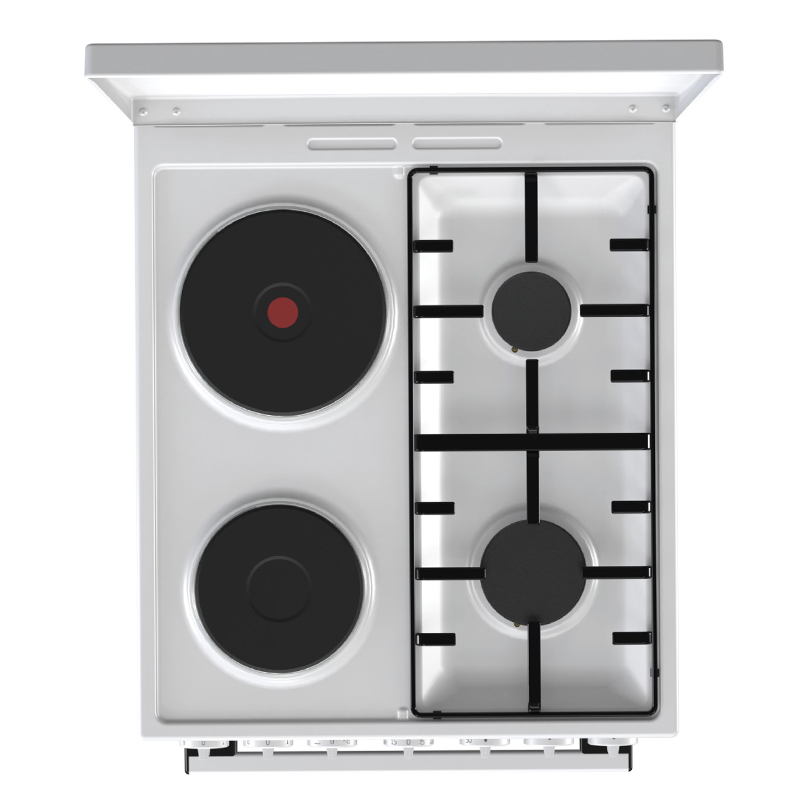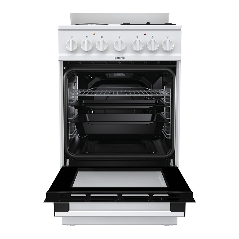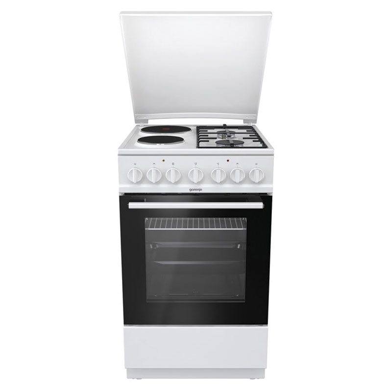 Комбинирана готварска печка GORENJE K5241WF с 2 газови котлона с електрическо запалване, 2 котлона на ток и мултифункционална вентилаторна фурна. Готварската печка е от енергиен клас А, с полезен обем на фурната – 70л, мощност при включване 5kW и с размери (Ш х В х Д) 50 х 85 х 59.4см. Управлението и настройките се извършват механично чрез ергономични бутони, разположени в предния панел на печката.