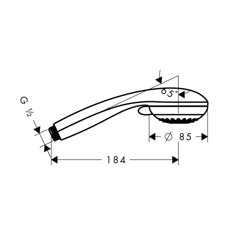 Ръчен душ за баня Crometta Vario на HANSGROHE с диаметър на диска Ф85мм. Отличава се с красив дизайн и дълготрайност. Направен е от извънредно устойчив и здрав синтетичен материал. Предлага се с бяла глава и хромиран корпус. Има две регулируеми степени на струята, които се променят чрез завъртане на диска. Това са: Normal spray, Vario. Ръчният душ може да се свърже и към проточни бойлери. Отстоянието от монтажния отвор на ръчния душ до средата на диска е 184мм. Водната струя пада под ъгъл от 65°, спрямо положението на ръкохватката. Максималният воден поток е 17 л./мин. при налягане от 3bar. Присъединителният размер е G 1/2.