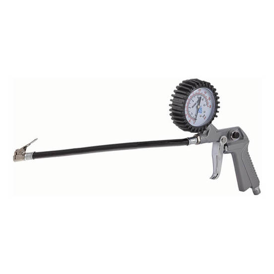 Пистолетът за помпане разполага с манометър, чийто диаметър е ф63мм. Уредът е с компактни размери и изключително приемливо тегло. Неговите габарити са 120 x 30 x 250мм. Пренася се удобно и лесно, не заема много място и може да се постави в багажник или пътна чанта. Не изисква специална поддръжка, използва се с лекота. Изработен е от високоустойчиви материали, неподатливи на различни влияния като влага, температурни промени, износване и др.