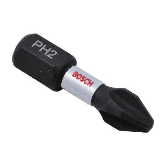 Ударен бит от вида Phillips PH2 BOSCH Impact Control, предназначен за поставяне на винтоверти, акумулаторни отвертки и ръчни отвертки. Изработен е от висококачествен метал, устойчив на удари, корозия и продължителна употреба. Накрайникът е с шестостенен присъединителен край на вложката и дължина 25мм. Ударният бит е с размер за присъединяване 1/4".