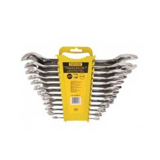 Комплект звездогаечни ключове TOPMASTER, намиращи широко приложение в промишлеността, строително-ремонтните дейности, поддръжката на машини и съоръжения и др. Изработени са от висококачествена хром-ванадиева стомана с полирана повърхност, устойчива на удари, следи от износване, дълготрайна употреба и др. Звездогаечните ключове са с наклон на главата - удобни и лесни за употреба, дори при извършването на продължителни ремонтни дейности. Разполагат с тесен и удобен корпус, осигуряващо максимален и лесен достъп в труднодостъпни места.
