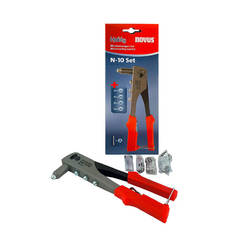Комплект попнитачка N-10 с 60 броя нитове, подходяща за използване за непрофесионални цели. Има възможност да се заменят накрайниците. Сменяемите нитове могат да бъдат с размери: 2.4мм, 3мм, 4мм и 5мм. Дръжката на попнитачката е ергономично проектирана и подсилена. Попнитачката е оборудвана с възвратна пружина за по-лесна употреба с една ръка и вграден ключ за смяна на нитовете. Инструментът е със стоманено рамо, тясна глава за работа на труднодостъпни места и заключваща дръжка за удобно съхранение. Инструментът е съвместим само с алуминиеви нитове.