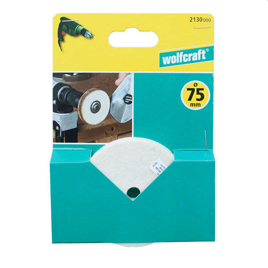 Диск за полиране WOLFCRAFT, предназначен за бормашини. Използва се за нанасяне на политура и восък върху различни повърхности. Филцовият диск е с диаметър Ф 75мм и дебелина 10мм. Изработен е от качествени материали, устойчиви на употреба и продължителна работа. При направата му е използвана модерна технология, която гарантира неговата здравина и качество.