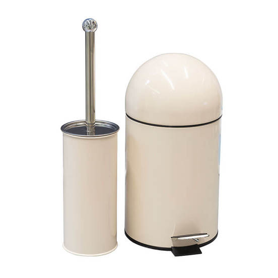 Комплект аксесоари за тоалетна, състоящ се от кош за отпадъци с вместимост 3 литра и четка за тоалетна с височина 40см. Аксесоарите за баня на INTER CERAMIC са изработени от метал с предпазно покритие в бежов цвят, което гарантира надеждна защита срещу образуването на ръжда и надраскване.