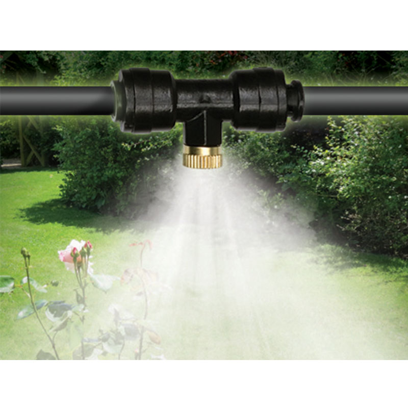 Системата за охлаждане чрез водна мъгла се монтира изключително лесно и бъроз. За целта не са необходими допълнителни инструменти. За да е малксимално полезна, системата за мъглуване е с ниска консумация на вода - при налягане 2 bar всяка дюза ще изразходи около 1,8л. вода на час.