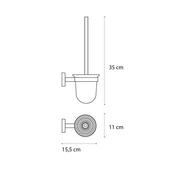 Притежава красив и модерен дизайн с овални форми. Може да бъде монтиран по два начина – чрез залепване към стената на банята посредством двойнолепящата лента, която се намира на гърба на повечето аксеаори за баня KAPITAN или чрез дупков монтаж. Всички нужни елементи за монтирането на четката за тоалетна са включени в комплекта.