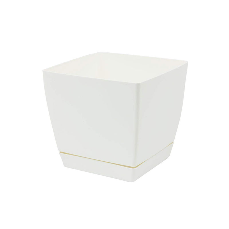 Красива саксия с подложка за отглеждане на билки и стайни растения. Саксията е изработена от висококачествена пластмаса. Устойчива е на всякакви атмосферни условия, UV лъчи, механични повреди, подхранващи препарати и пестициди за растения. Пластмасовата саксия за цветя COUBI е с размери 14 х 14 х 12.5см и с вместимост 1.5л.