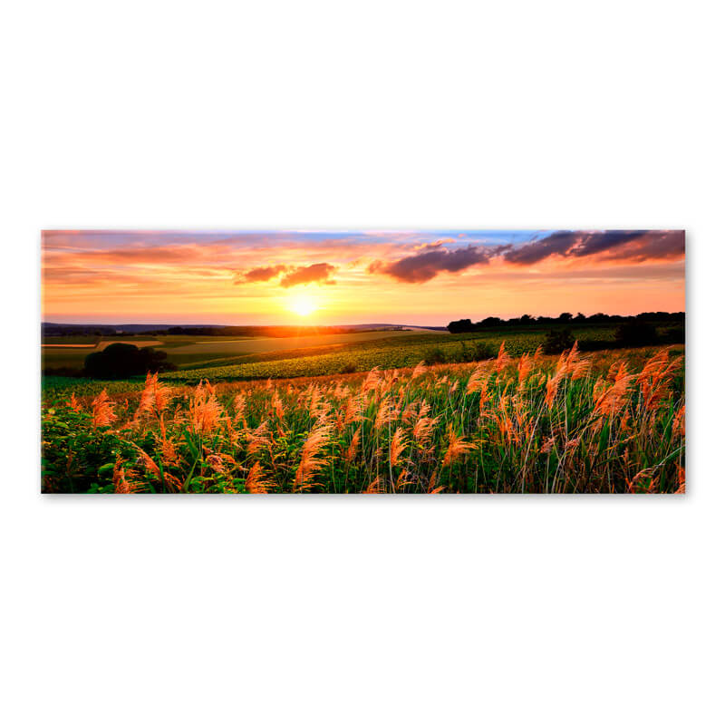 Стъклена картина за стена Слънчево поле NATURE EX253 от серията Glasspik на марката STYLER. Картината е изработена чрез специална технология за печат върху стъкло. Стъкленият принт печат гарантира добър естетичен вид, реалистични цветове с високо фотографско качество и устойчивост на атмосферни влияния. Този тип картини са идеални за тези, които винаги търсят нещо различно и красиво, като не се страхуват да експериментират в интериорния дизайн.