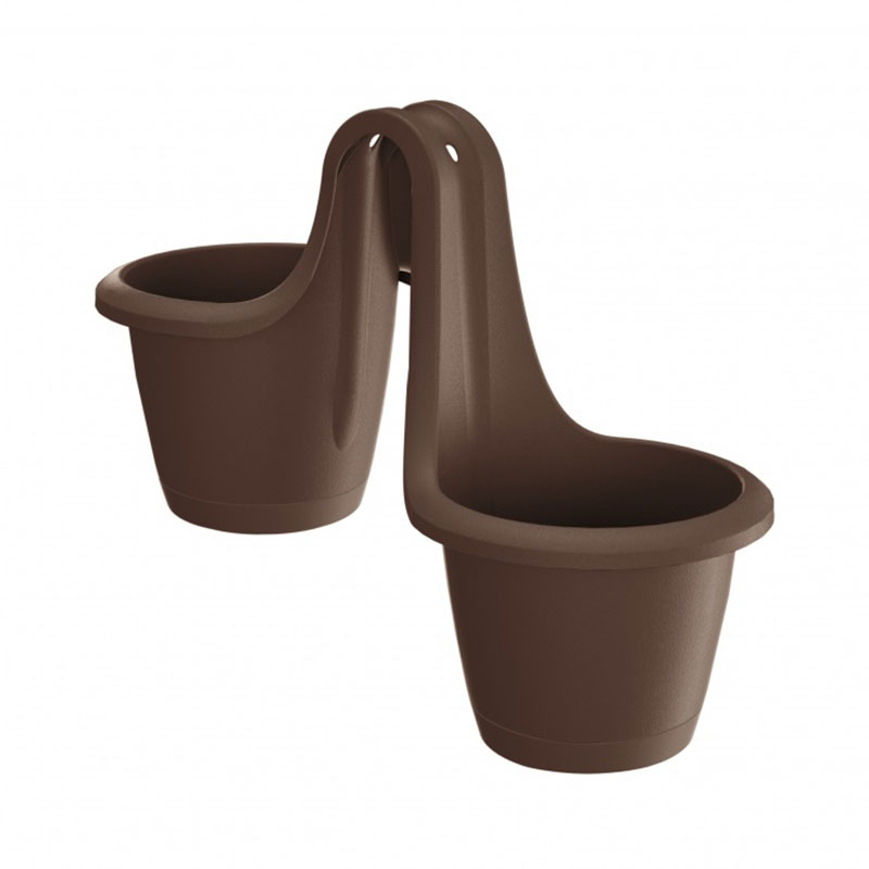 Двойна пластмасова саксия за цветя в цвят кафяв от серията Respana Twins. Саксията е в подходяща форма за поставяне на парапет. Тя е разделена на две половини, всяка от които е с вместимост по 2.5 литра. Двойната саксия за парапет е с размери 46.3 х 20 х 33.6см. Изработена е от PVC по високи стандарти за качество. Устойчива е на всякакви атмосферни условия, UV лъчи, механични повреди, подхранващи препарати и пестициди за растения.