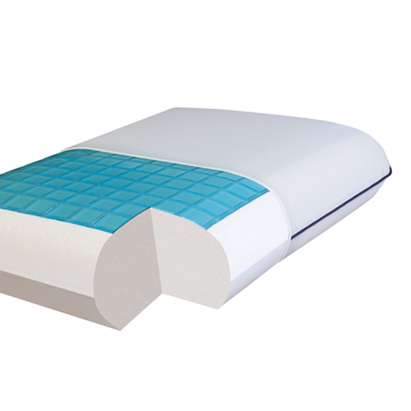Възглавница за сън Adry Cool разполага и със слой охлаждащ гел, който отнема горещината, отвежда я към вътрешността на възглавницата и я разсейва.