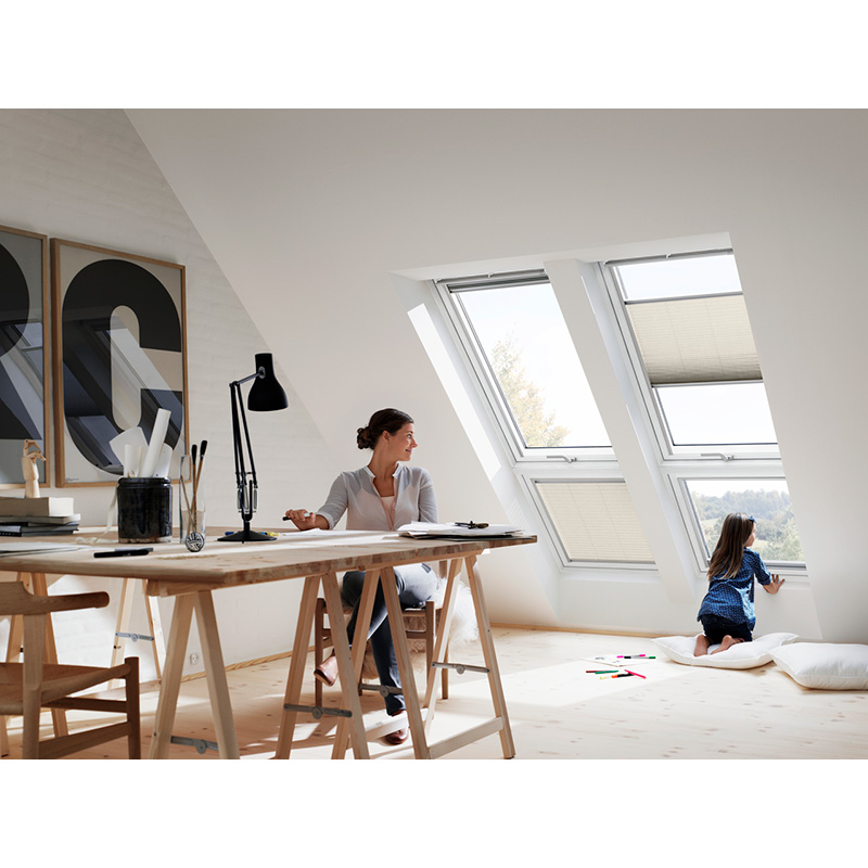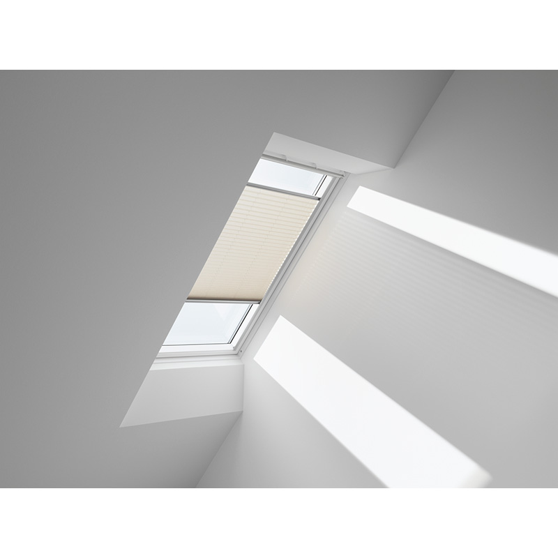 Плисираната щора на VELUX добавя стил и характер във вашия дом. Преместете долната и горната лайстна за управление там, където желаете и се насладете на комфортна светлина и достатъчно гледка навън.