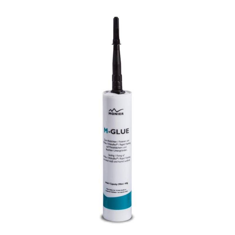Лепилото M-GLUE е специално разработено за използване при монтаж на метални обшивки и аксесоари за покриви. Благодарение на бързата си реакция на влага и високата начална якост, е незаменим помощник за монтаж в променливи атмосферни условия.