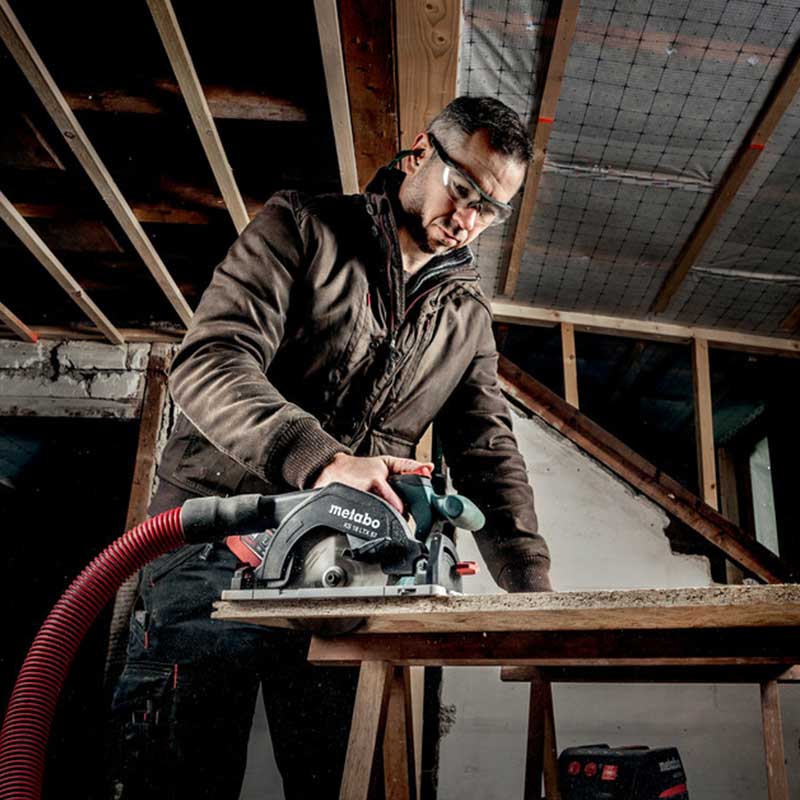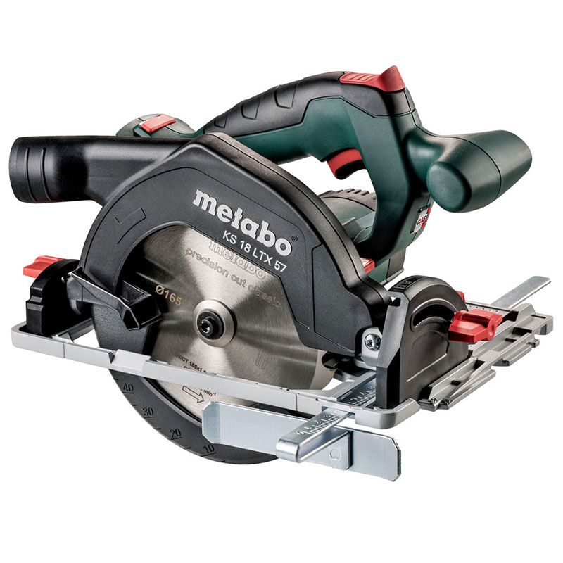 Акумулаторен ръчен циркуляр KS 18 LTX 57 от METABO за рязане на дървесина и ПДЧ с 4600 об/мин. Ръчният циркуляр е подходящ както за непрофесионални майстори, така и за професионална употреба. Устойчив е на високи натоварвания и продължителна работа. Той е лек и компактен, с универсална употреба на работното място. Безопастността при работа е гарантирана благодарение на спирачката, която спира веднага режещия диск при нередности.