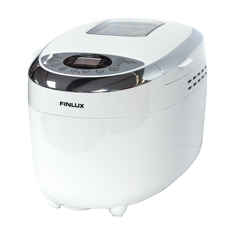 Домашната хлебопекарна на FINLUX е с вместимост 1.25кг и предлага 12 различни програми за приготвяне на хляб.