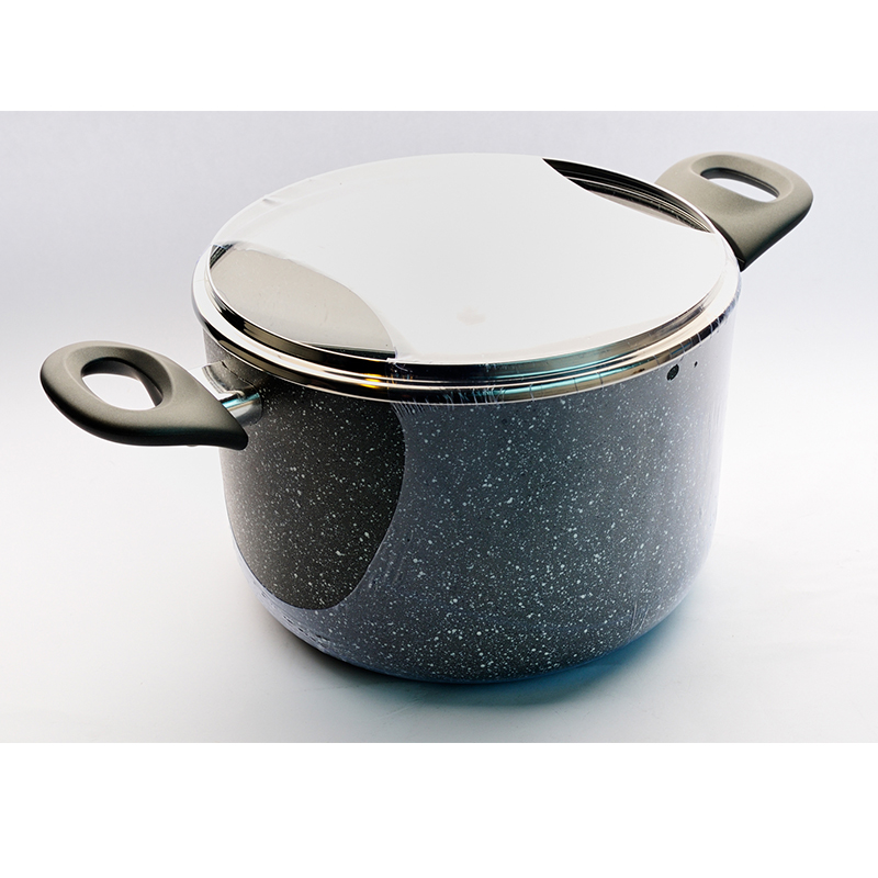 Петслойно незалепващо вътрешно и трислойно външно покритие, подсилено с минерални частици. Индукционно дъно.