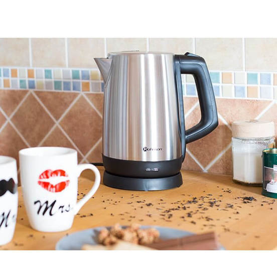 Електрическа кана R-7005 от ROHNSON. Тя е с обем от 1.7л и мощност 2000W. Корпусът е иноксов разполага със свобода на въртене на 360 °. Уредът е снабден с копче за отваряне на капака, както и свалящ се варовиков филтър. Надеждна и безопасна за използване, поради функцията Автоматично изключване и системата против прегряване. Кабелът разполага със собствено отделение за прибиране и лесно съхранение при неизползване. Уредът за топлене на вода загрява чрез скрит нагревател от неръждаема стомана.