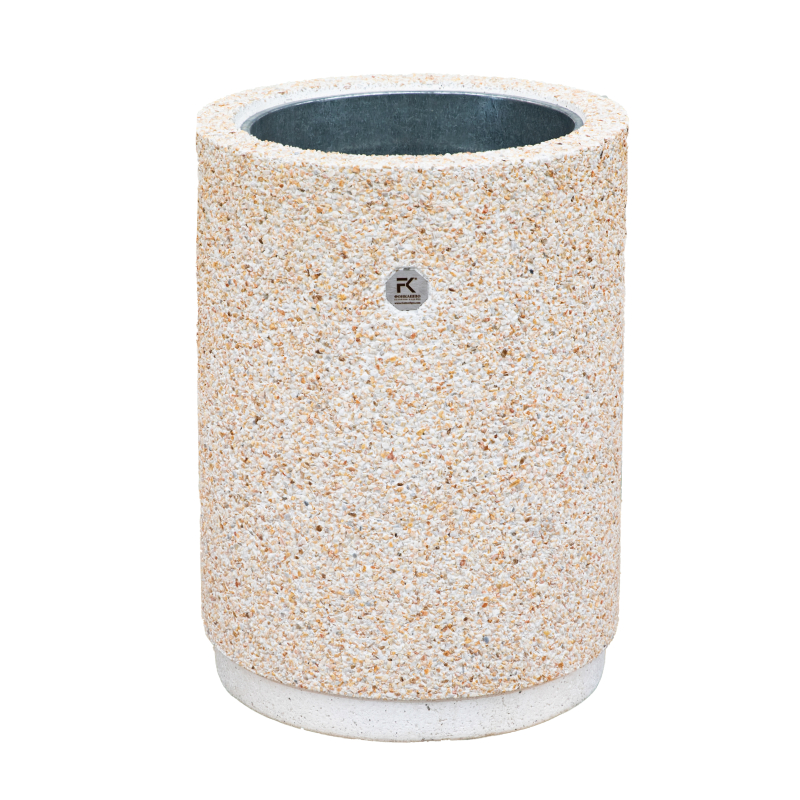 Градинският бетонен кош за отпадъци е с кръгла форма с диаметър ф45 см и височина 60 см. Подходящ е за поставяне на открито в паркове, градинки, пред обществени или офис сгради.