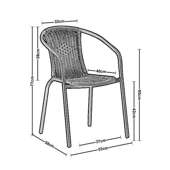 Градински стол, изработен от PVC ратан и тръбна конструкция от метал. Има форма, която осигурява удобство и стабилност при ползването му. Материалите, от които е изработен столът, са гаранция за неговия дълъг период на експлоатация. Столът от PVC ратан е елегантно и стилно решение за вашата градина, тераса и веранда.