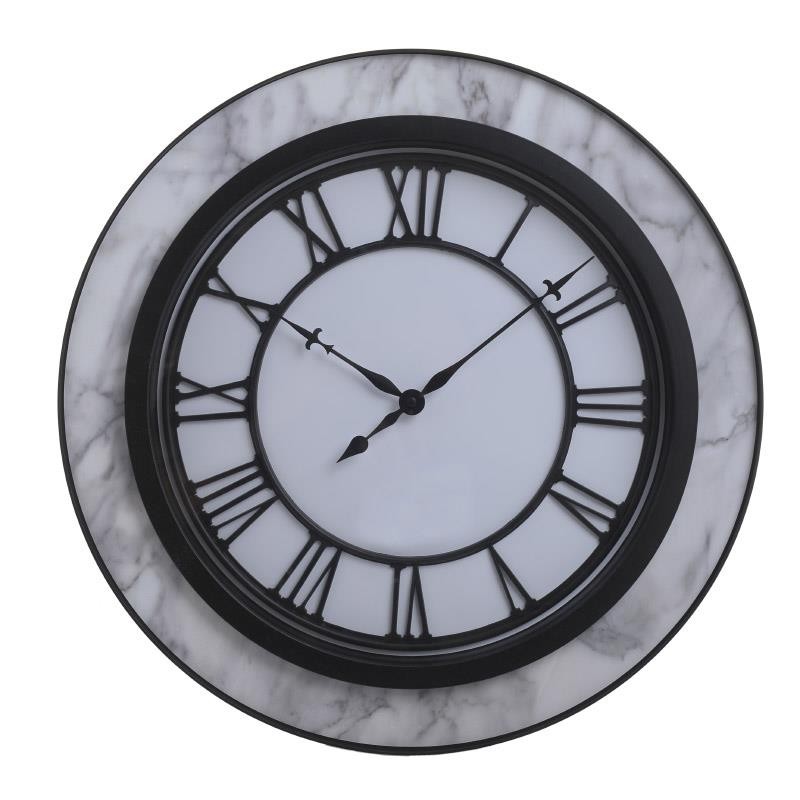 Часовникът е произведен от висококачествена пластмаса с шарка, която имитира мрамор. Материалът е устойчива на UV лъчи и ще запаци цветовете си дълго време. Стенният часовник е с диаметър 50 х 5 х 50см.