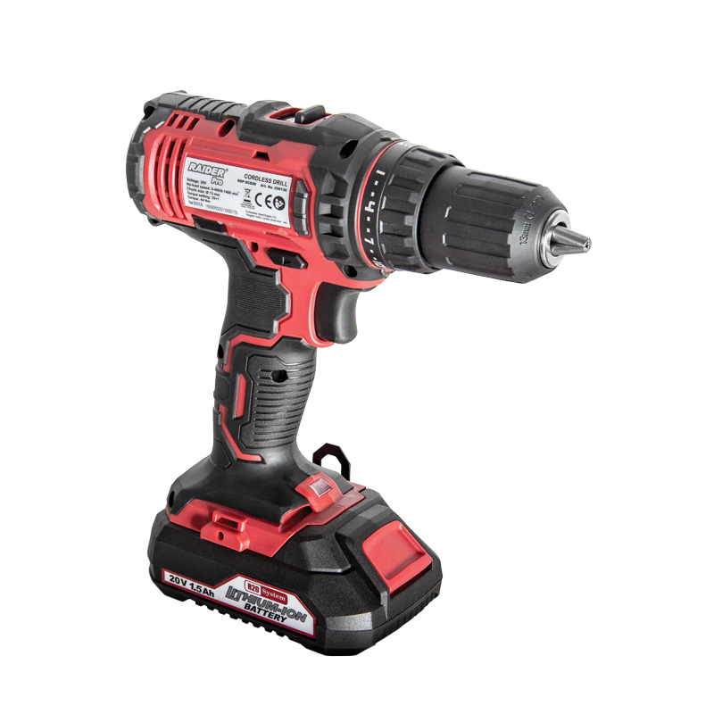 Акумулаторен винтоверт RAIDER модел RDP-SCD20 Set с размер на патронника 13мм и 25+1 степени на въртящия момент. В комплекта са включени акумулаторна батерия с капацитет 1.5Ah и бързозарядно устройство. Допълнение към машината е и щипката за колан, за удобно съхранение през работния процес.