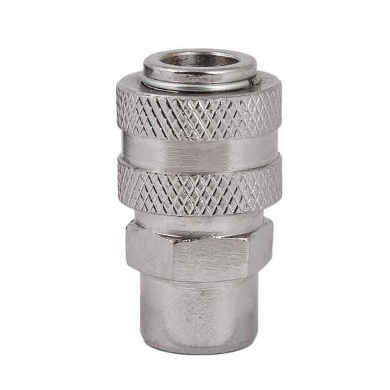 Накрайник за пневматични уреди и машини с присъединителен размер 1/4 Ж. Произведен е от месинг със защитно покритие.