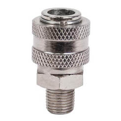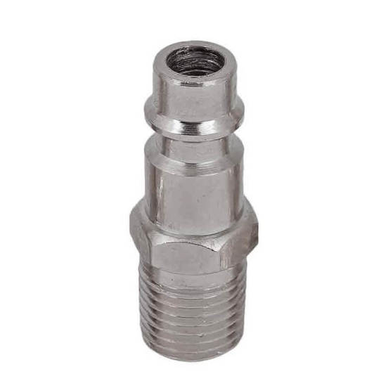 Накрайник за бърза връзка за пневматични уреди и машини с присъединителен размер 1/4 М. Произведен е от месинг със защитно покритие.