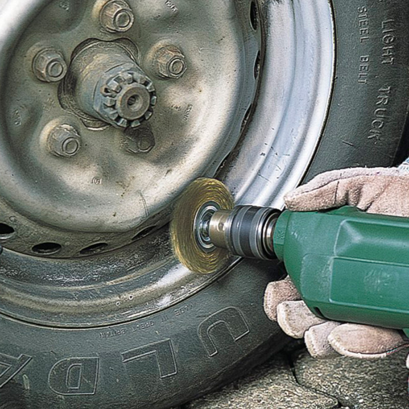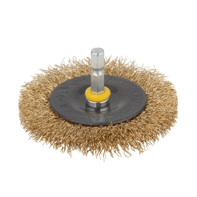 Дискова месингова четка за отстраняване на ръжда и почистване от заваръчни остатъци при работа с метали, ламарина, стоманена тел и други.