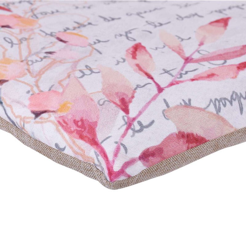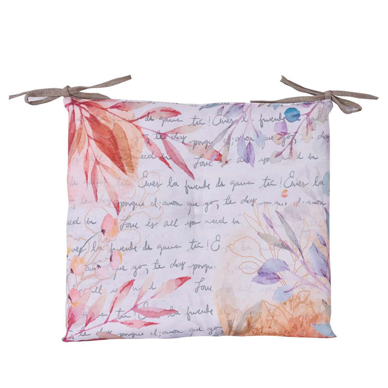 Декоративна възглавница от серията Лирика на марката APOLENA в цветна щампа цветя, клонки и надписи. Размерите на възглавницата са 45 х 45см. Материалът, от който е изработена, е 100% полиестер. Пълнежът е от силиконов пух, който не позволява развитието на микроорганизми.