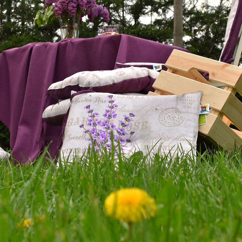 Декоративна възглавница от серията Лавандула на марката APOLENA в цветна щампа лавандула. Размерите на възглавницата са 45 х 45см. Материалът, от който е изработена, е 100% полиестер. Пълнежът е от силиконов пух, който не позволява развитието на микроорганизми.