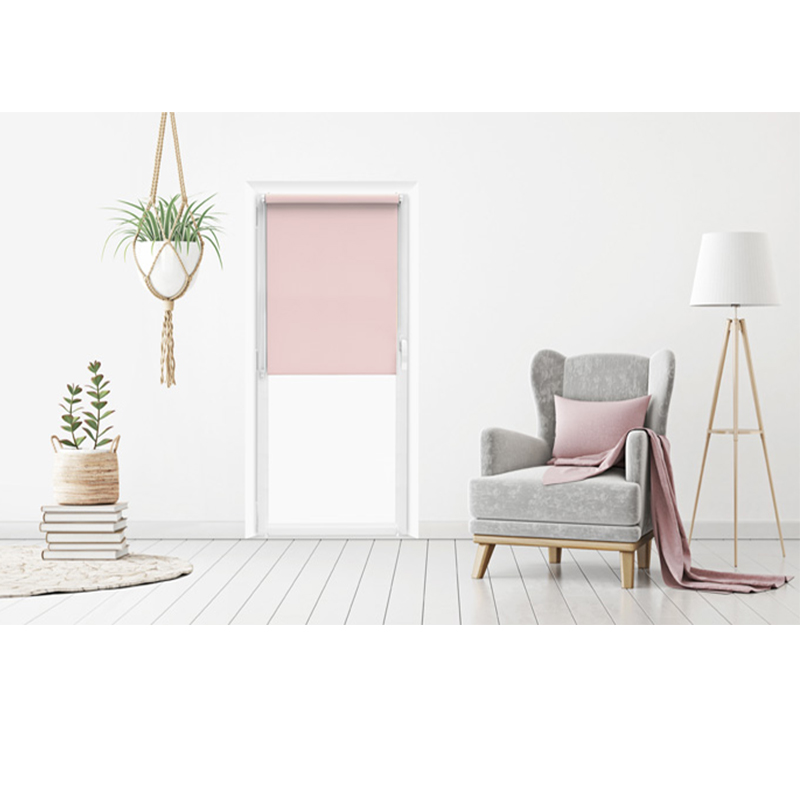 Вътрешна ролетна щора на марката MARDOM. Изработена е от изкуствена материя - 100% полиестер в цвят пудра. Размерът на плата на щората е 61.5 х 150см. С поставянето на механизмите и държачите от двете страни на щората, общата широчина се увеличава с до 5 см.