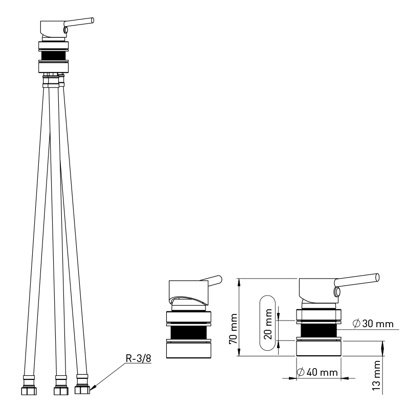 Бидетна смесителна арматура, произведена от IZYAPI e с размер Ф 30мм. Дюзата е хром, а тялото на самопочистващата тръба е ABS.