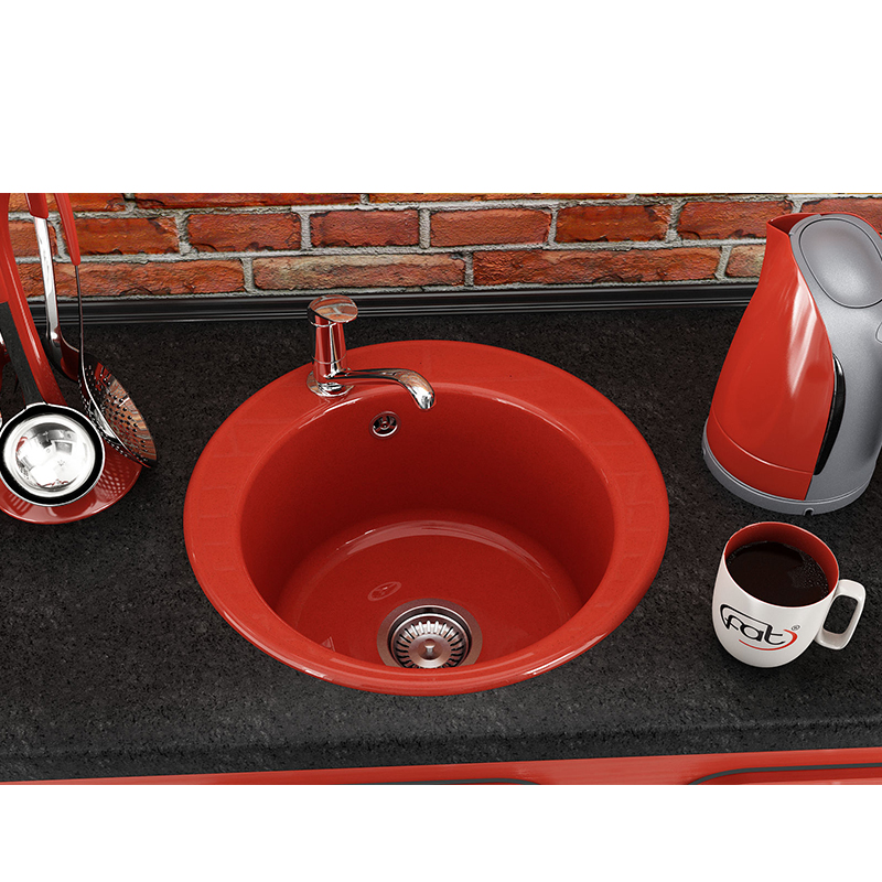 Кръгла кухненска мивка за вграждане FAT, изработена от граниксит с диаметър Ф 49см в цвят "Silver Stone"- сребърен камък. Към комплекта е включен висококачествен италиански сифон за мивка с размер Ф 90мм.