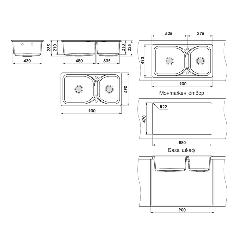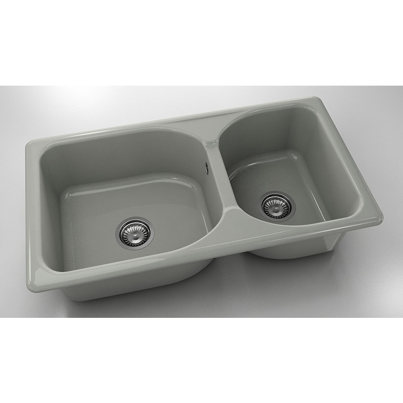 Кухненска мивка за вграждане FAT, изработена от полимермрамор с размер 90 х 49см с две корита. Към комплекта е включен висококачествен италиански сифон за мивка с размер Ф90мм.