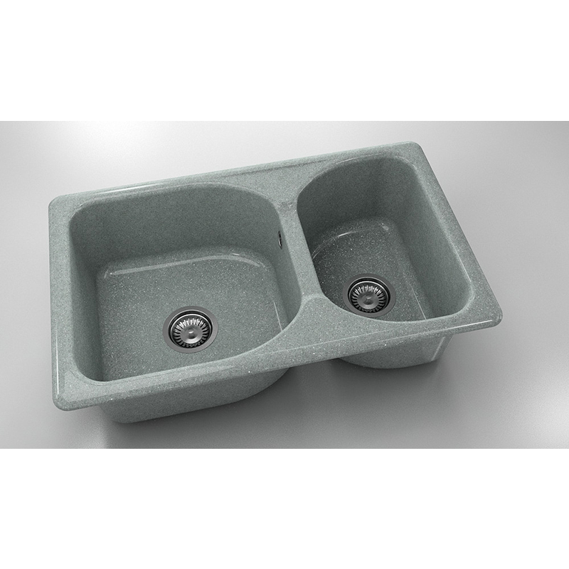 Кухненска мивка за вграждане FAT, изработена от граниксит с размер 80 х 49см в цвят Платина с две корита. Към комплекта е включен висококачествен италиански сифон за мивка с размер Ф 90мм.