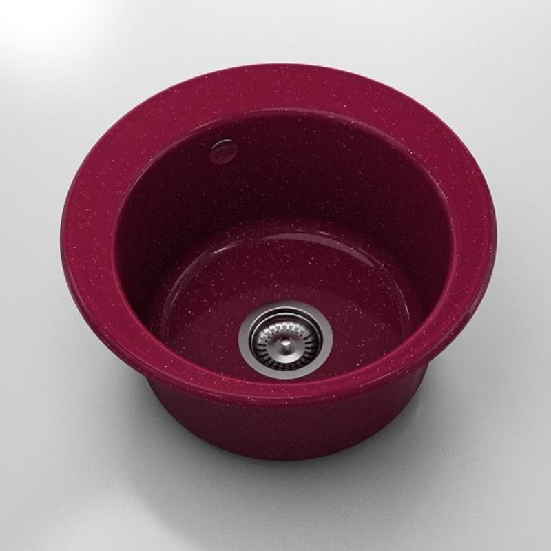 Кръгла кухненска мивка за вграждане на марката FAT. Изработена от полимермрамор с габаритни размери ф49 см в цвят сребрист виолет. Към комплекта е включен висококачествен италиански сифон за мивка с размер ф90 мм.