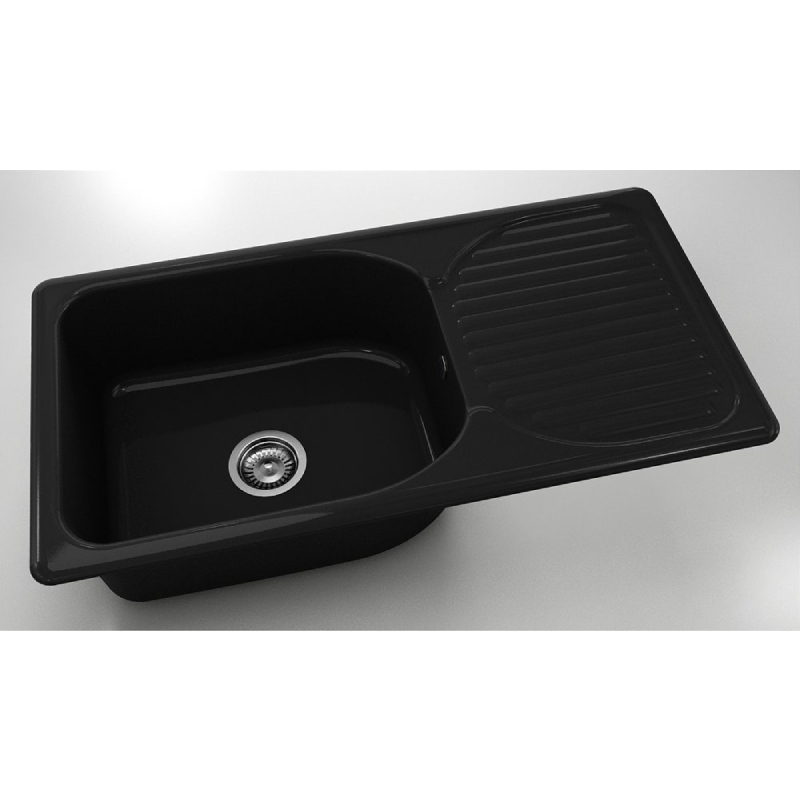 Кухненска мивка за вграждане на марката FAT. Изработена от полимермрамор с размери 95 х 49 см в цвят черен гранит. Моделът дава възможност за избор на ляв или десен плот. Към комплекта е включен висококачествен италиански сифон за мивка с размер ф90 мм.