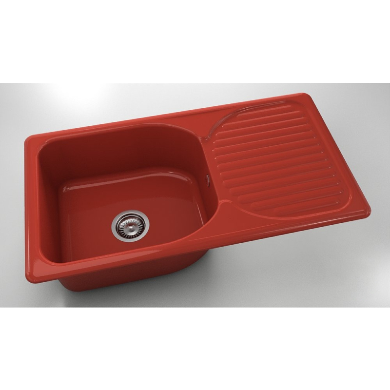 Кухненска мивка за вграждане на марката FAT. Изработена от полимермрамор с габаритни размери 90 х 49 см с възможност за избор на ляв или десен плот. Мивката е в цвят рубиненочервен. Към комплекта е включен висококачествен италиански сифон за мивка с размер ф90 мм.