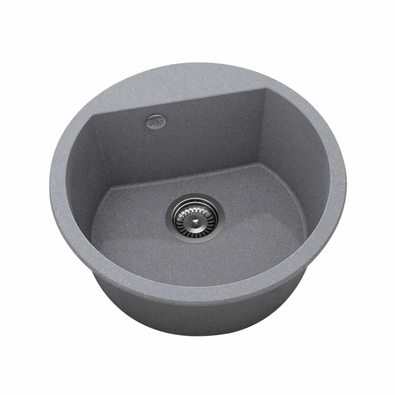 Кръгла кухненска мивка с борд на марката FAT - за вграждане. Изработена от полимермрамор с диаметър ф51 см. Към комплекта е включен висококачествен италиански сифон за мивка с размер ф90 мм.
