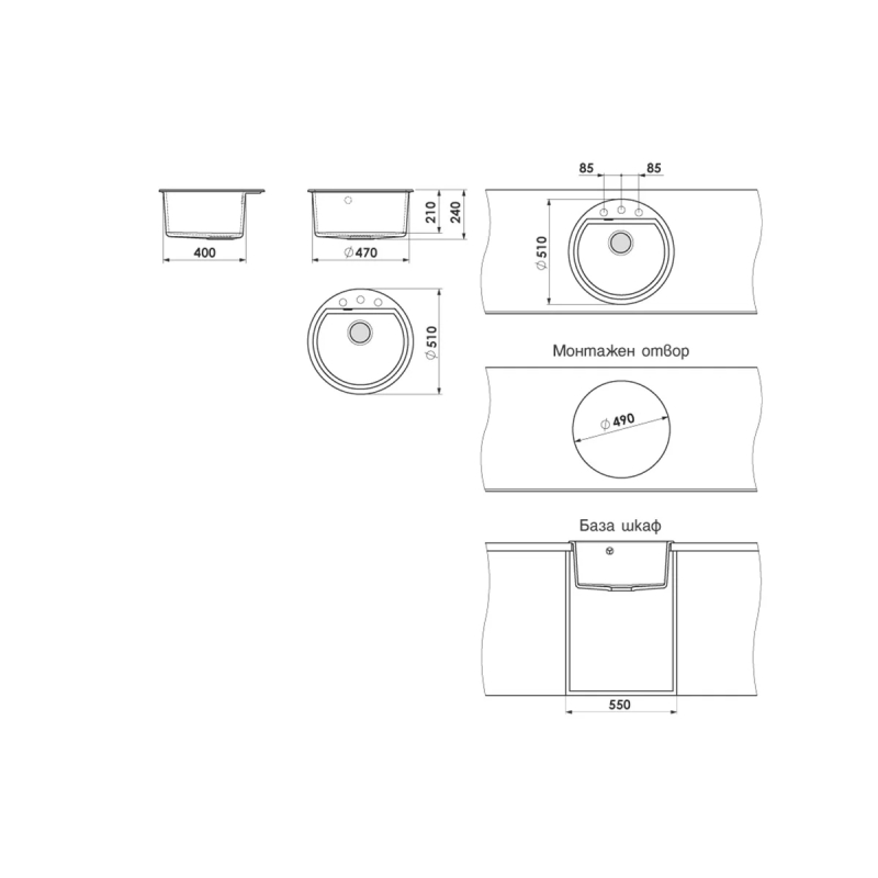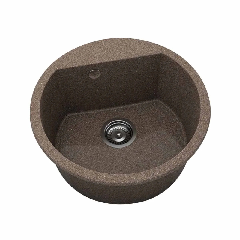 Кръгла кухненска мивка с борд на марката FAT - за вграждане. Изработена от полимермрамор с диаметър ф51 см. Към комплекта е включен висококачествен италиански сифон за мивка с размер ф90 мм.