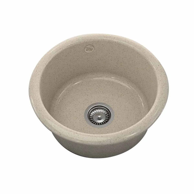 Кръгла кухненска мивка за вграждане FAT, изработена от граниксит с диаметър Ф49 см. Към комплекта е включен висококачествен италиански сифон за мивка с размер Ф90 мм.