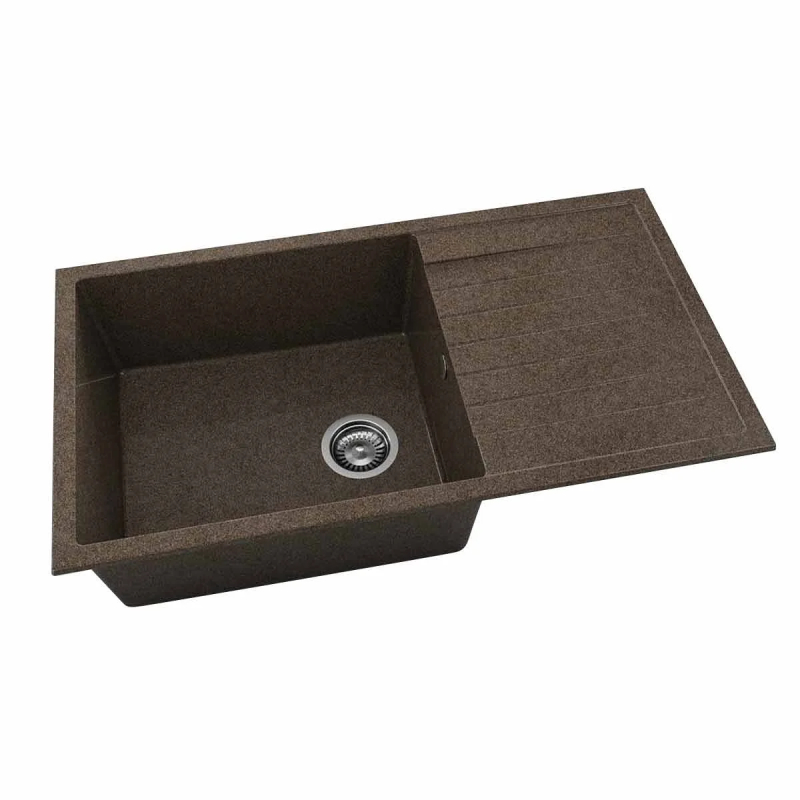 Кухненска мивка за вграждане на марката FAT. Изработена от полимермрамор с габаритни размери 90 х 49 см с възможност за избор на ляв или десен плот. Към комплекта е включен висококачествен италиански сифон за мивка с размер ф90 мм.