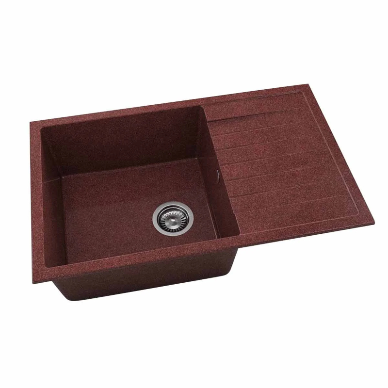 Кухненска мивка за вграждане FAT, изработена от полимермрамор с размер 80 х 49 см с възможност за избор на ляв или десен плот. Към комплекта е включен висококачествен италиански сифон за мивка с размер Ф90 мм.