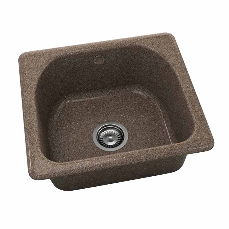 Единична кухненска мивка за вграждане FAT, изработена от полимермрамор с размер 51 х 46 см. Към комплекта е включен висококачествен италиански сифон за мивка с размер Ф90 мм.