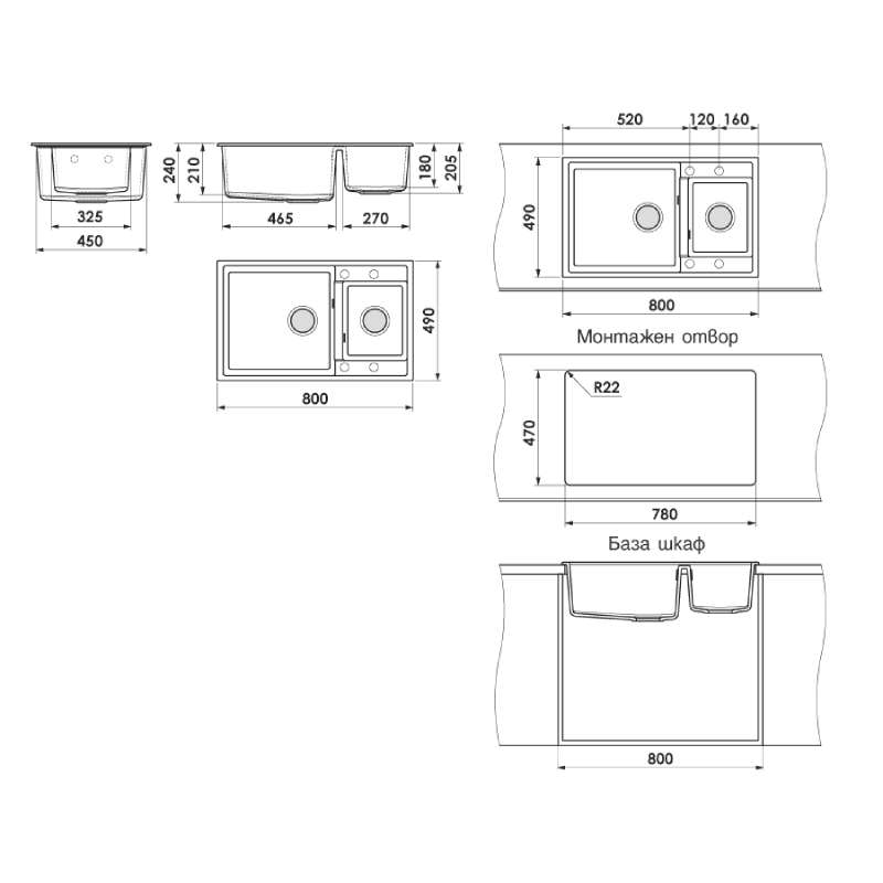 - Габаритни размери: 800 x 490 мм