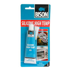Топлоустойчив силикон Silicone High Temp на марката BISON. Силиконът е също така и маслоустойчив. Постоянно е еластичен. Предназначен е специално за връзки и уплътнения, които трябва да издържат на висока температура. Залепва към гладък метал, стъкло, емайл и много други повърхности. Отличен за уплътнение на двигатели, фурни, микровълнови печки, ауспуси, димоотводи, вентилационни тръби и др.